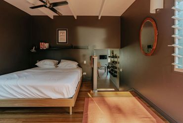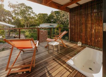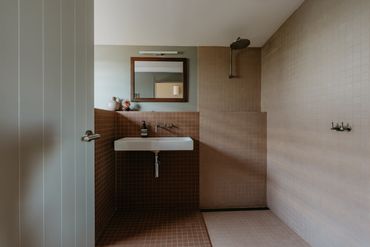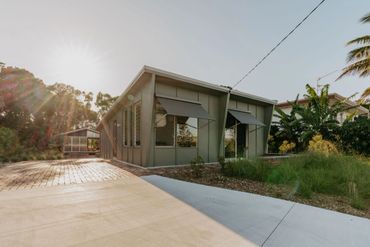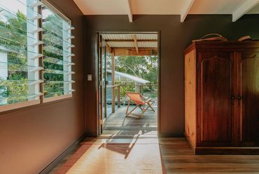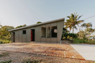 Using the local landscape to complement this renovation which started as an old asbestos beach shack and was brought back to life with a modern minimalist renovation focusing on Japanese styling and recycled features throughout. The design brief for this property was to keep the original retro feel and add flood mitigation measures throughout including tiled floors, compressed fibro that sits 50mm from the ground covered by skirting boards to ensure drying of wall cavities in a flood event and marine grade ply and varnish for the cabinetry to try and enhance durability and prolong its lifespan. The stand out features throughout are custom windows made onsite, private retreat style deck with build in bath, custom kitchen and laundry cabinetry made from 25mm thick marine ply designed and built onsite, outdoor bench seats made from reclaimed hardwood saved from the original dwelling and recycled bricks used to landscape the courtyard space. This project has resulted in a soft and aesthetically pleasing design that feels layered by the landscape around it. Fingal Road was an award winning project at MBA Northern Rivers Region Excellence in Building Awards in 2025.